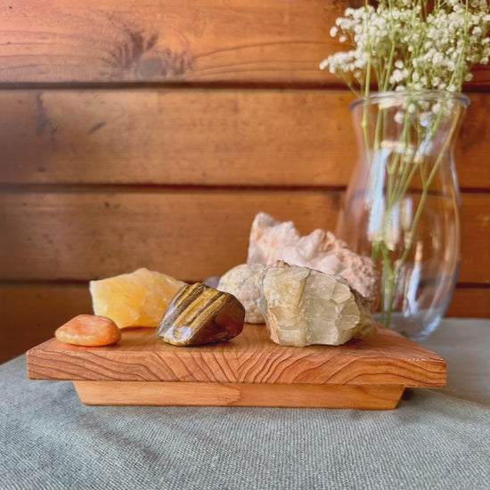 Our cedar display stand is crafted from rich, natural cedar and finished with protective tung oil, creating a warm, timeless look. Its simple yet refined design elevates any special item you choose to showcase, making your treasured pieces stand out beautifully. Grain pattern will vary with each riser. (Display items not included, only wood display stand)